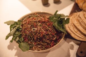 Salada de lentilha, beringela, cebola roxa e tomate seco
